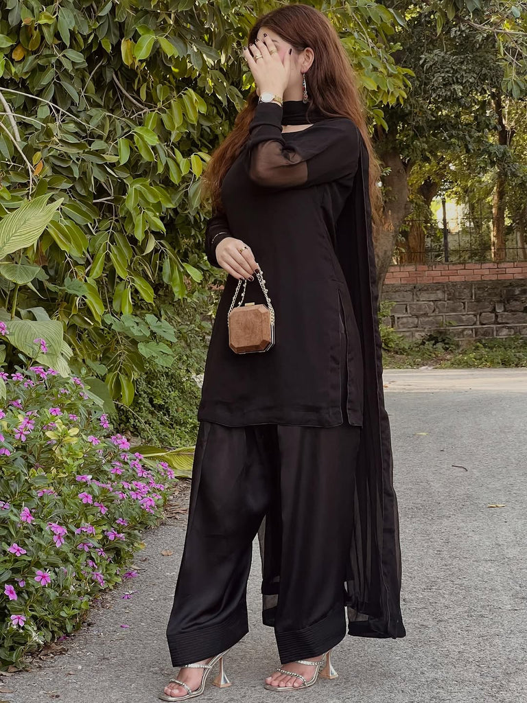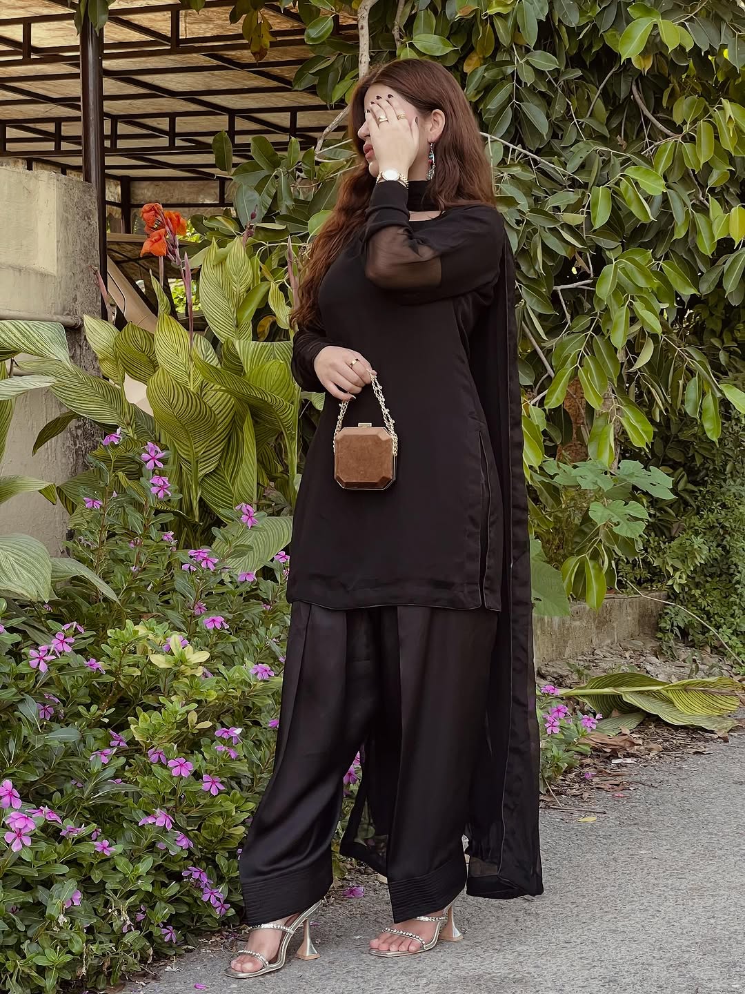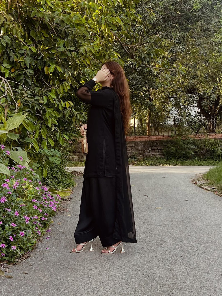 Step into the realm of refined simplicity with Eaira Midnight Veil, a pure embodiment of elegance in motion. Draped in the deepest shade of black, this ensemble celebrates the art of minimalism β powerful, timeless, and effortlessly chic.